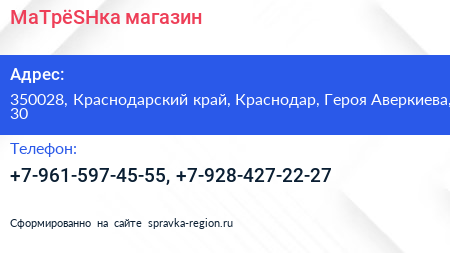 МаТрёSHка, магазин по адресу 350028, Краснодарский край, Краснодар, Героя Аверкиева, 30 в дальнейшем Организация, размещена в следующих категориях: