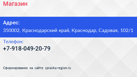 Магазин по адресу 350002, Краснодарский край, Краснодар, Садовая, 102/1 в дальнейшем Организация, размещена в следующих категориях: