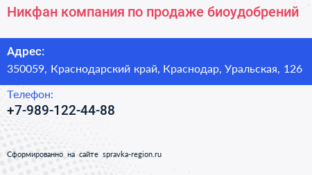 Никфан, компания по продаже биоудобрений по адресу 350059, Краснодарский край, Краснодар, Уральская, 126 в дальнейшем Организация, размещена в следующих категориях: