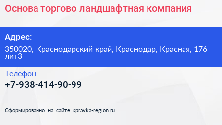 Основа, торгово-ландшафтная компания по адресу 350020, Краснодарский край, Краснодар, Красная, 176 лит3 в дальнейшем Организация, размещена в следующих категориях: