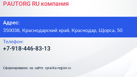 PAUTORG.RU, компания по адресу 350038, Краснодарский край, Краснодар, Щорса, 50 в дальнейшем Организация, размещена в следующих категориях: