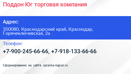 Поддон-Юг, торговая компания по адресу 350080, Краснодарский край, Краснодар, Горячеключевская, 2а в дальнейшем Организация, размещена в следующих категориях: