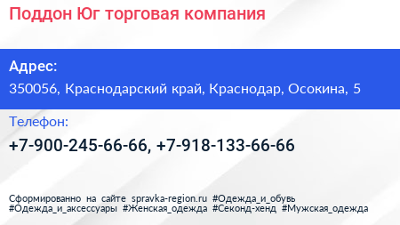 Поддон-Юг, торговая компания по адресу 350056, Краснодарский край, Краснодар, Осокина, 5 в дальнейшем Организация, размещена в следующих категориях: