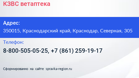 КЗВС, ветаптека по адресу 350015, Краснодарский край, Краснодар, Северная, 305 в дальнейшем Организация, размещена в следующих категориях:
