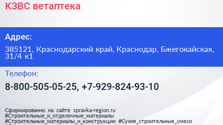 КЗВС, ветаптека по адресу 385121, Краснодарский край, Краснодар, Бжегокайская, 31/4 к1 в дальнейшем Организация, размещена в следующих категориях: