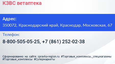 КЗВС, ветаптека по адресу 350072, Краснодарский край, Краснодар, Московская, 67 в дальнейшем Организация, размещена в следующих категориях:
