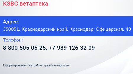 КЗВС, ветаптека по адресу 350051, Краснодарский край, Краснодар, Офицерская, 43 в дальнейшем Организация, размещена в следующих категориях: