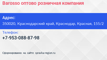 Barosso, оптово-розничная компания по адресу 350020, Краснодарский край, Краснодар, Красная, 155/2 в дальнейшем Организация, размещена в следующих категориях: