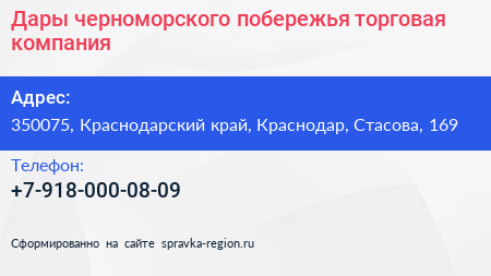 Дары черноморского побережья, торговая компания по адресу 350075, Краснодарский край, Краснодар, Стасова, 169 в дальнейшем Организация, размещена в следующих категориях: