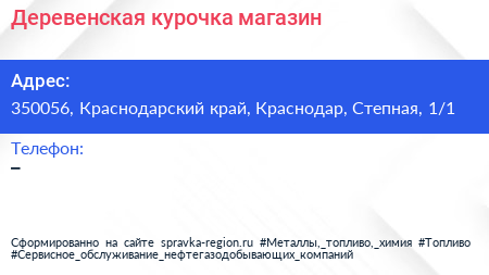 Деревенская курочка, магазин по адресу 350056, Краснодарский край, Краснодар, Степная, 1/1 в дальнейшем Организация, размещена в следующих категориях: