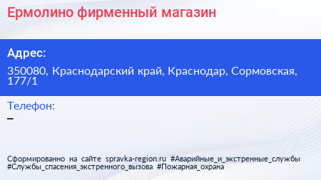 Ермолино, фирменный магазин по адресу 350080, Краснодарский край, Краснодар, Сормовская, 177/1 в дальнейшем Организация, размещена в следующих категориях: