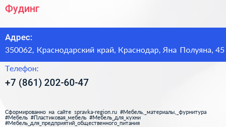 Фудинг по адресу 350062, Краснодарский край, Краснодар, Яна Полуяна, 45 в дальнейшем Организация, размещена в следующих категориях: