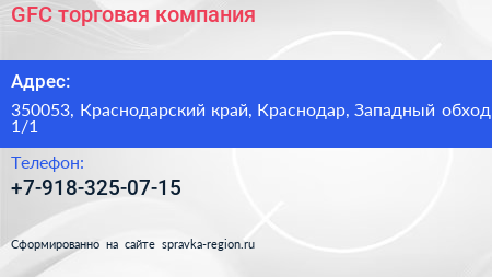 GFC, торговая компания по адресу 350053, Краснодарский край, Краснодар, Западный обход, 1/1 в дальнейшем Организация, размещена в следующих категориях: