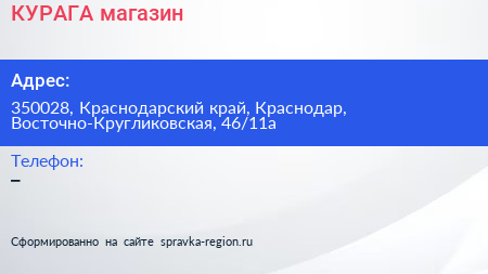 КУРАГА, магазин по адресу 350028, Краснодарский край, Краснодар, Восточно-Кругликовская, 46/11а в дальнейшем Организация, размещена в следующих категориях: