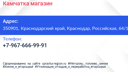 Камчатка, магазин по адресу 350901, Краснодарский край, Краснодар, Российская, 64/1 в дальнейшем Организация, размещена в следующих категориях: