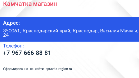 Камчатка, магазин по адресу 350061, Краснодарский край, Краснодар, Василия Мачуги, 24 в дальнейшем Организация, размещена в следующих категориях: