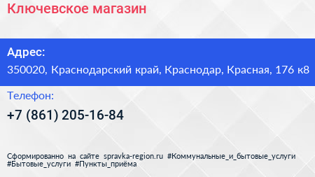 Ключевское, магазин по адресу 350020, Краснодарский край, Краснодар, Красная, 176 к8 в дальнейшем Организация, размещена в следующих категориях: