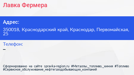 Лавка Фермера по адресу 350018, Краснодарский край, Краснодар, Первомайская, 25 в дальнейшем Организация, размещена в следующих категориях: