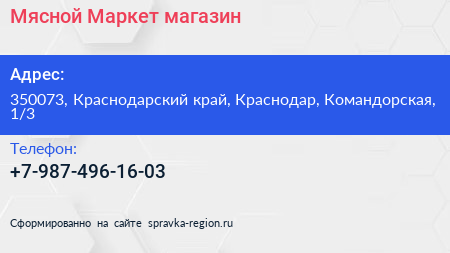 Мясной Маркет, магазин по адресу 350073, Краснодарский край, Краснодар, Командорская, 1/3 в дальнейшем Организация, размещена в следующих категориях: