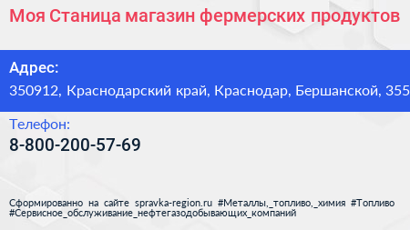 Моя Станица, магазин фермерских продуктов по адресу 350912, Краснодарский край, Краснодар, Бершанской, 355 в дальнейшем Организация, размещена в следующих категориях:
