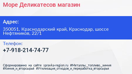Море Деликатесов, магазин по адресу 350051, Краснодарский край, Краснодар, шоссе Нефтяников, 22/1 в дальнейшем Организация, размещена в следующих категориях: