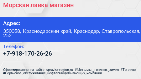 Морская лавка, магазин по адресу 350058, Краснодарский край, Краснодар, Ставропольская, 252 в дальнейшем Организация, размещена в следующих категориях: