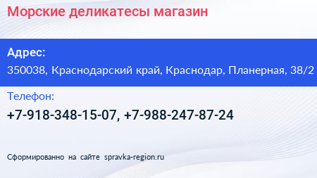 Морские деликатесы, магазин по адресу 350038, Краснодарский край, Краснодар, Планерная, 38/2 в дальнейшем Организация, размещена в следующих категориях: