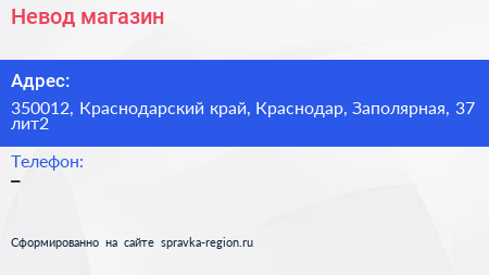 Невод, магазин по адресу 350012, Краснодарский край, Краснодар, Заполярная, 37 лит2 в дальнейшем Организация, размещена в следующих категориях: