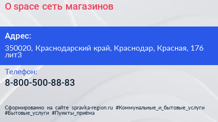 O: spaсe, сеть магазинов по адресу 350020, Краснодарский край, Краснодар, Красная, 176 лит3 в дальнейшем Организация, размещена в следующих категориях: