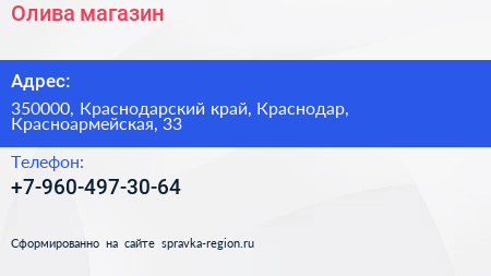 Олива, магазин по адресу 350000, Краснодарский край, Краснодар, Красноармейская, 33 в дальнейшем Организация, размещена в следующих категориях: