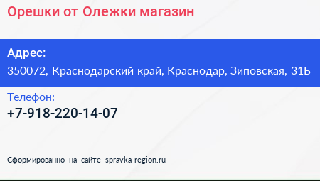 Орешки от Олежки, магазин по адресу 350072, Краснодарский край, Краснодар, Зиповская, 31Б в дальнейшем Организация, размещена в следующих категориях: