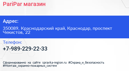 PariPar, магазин по адресу 350089, Краснодарский край, Краснодар, проспект Чекистов, 22 в дальнейшем Организация, размещена в следующих категориях: