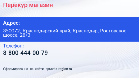 Перекур, магазин по адресу 350072, Краснодарский край, Краснодар, Ростовское шоссе, 28/3 в дальнейшем Организация, размещена в следующих категориях: