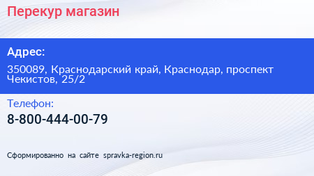 Перекур, магазин по адресу 350089, Краснодарский край, Краснодар, проспект Чекистов, 25/2 в дальнейшем Организация, размещена в следующих категориях: