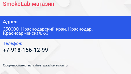 SmokeLab, магазин по адресу 350000, Краснодарский край, Краснодар, Красноармейская, 63 в дальнейшем Организация, размещена в следующих категориях: