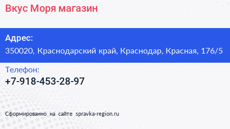 Вкус Моря, магазин по адресу 350020, Краснодарский край, Краснодар, Красная, 176/5 в дальнейшем Организация, размещена в следующих категориях: