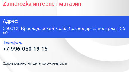 Zamorozka, интернет-магазин по адресу 350012, Краснодарский край, Краснодар, Заполярная, 35 к6 в дальнейшем Организация, размещена в следующих категориях: