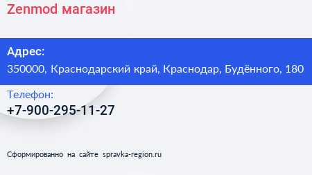 Zenmod, магазин по адресу 350000, Краснодарский край, Краснодар, Будённого, 180 в дальнейшем Организация, размещена в следующих категориях: