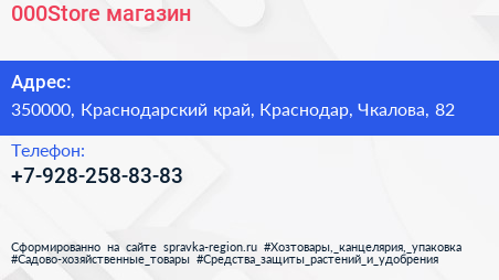 000Store, магазин по адресу 350000, Краснодарский край, Краснодар, Чкалова, 82 в дальнейшем Организация, размещена в следующих категориях: