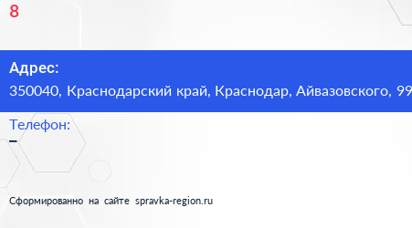 №8 по адресу 350040, Краснодарский край, Краснодар, Айвазовского, 99 в дальнейшем Организация, размещена в следующих категориях: