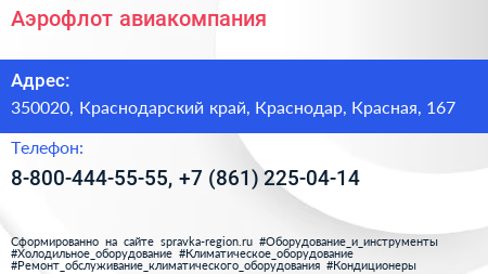 Аэрофлот, авиакомпания по адресу 350020, Краснодарский край, Краснодар, Красная, 167 в дальнейшем Организация, размещена в следующих категориях: