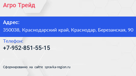 Агро Трейд по адресу 350038, Краснодарский край, Краснодар, Березанская, 90 в дальнейшем Организация, размещена в следующих категориях: