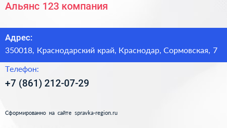 Альянс 123, компания по адресу 350018, Краснодарский край, Краснодар, Сормовская, 7 в дальнейшем Организация, размещена в следующих категориях:
