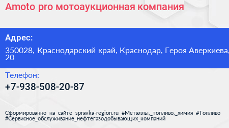 Amoto.pro, мотоаукционная компания по адресу 350028, Краснодарский край, Краснодар, Героя Аверкиева, 20 в дальнейшем Организация, размещена в следующих категориях: