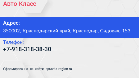 Авто Класс по адресу 350002, Краснодарский край, Краснодар, Садовая, 153 в дальнейшем Организация, размещена в следующих категориях: