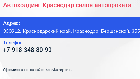 Автохолдинг Краснодар, салон автопроката по адресу 350912, Краснодарский край, Краснодар, Бершанской, 355 в дальнейшем Организация, размещена в следующих категориях: