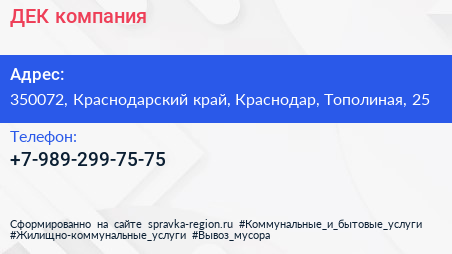 ДЕК, компания по адресу 350072, Краснодарский край, Краснодар, Тополиная, 25 в дальнейшем Организация, размещена в следующих категориях:
