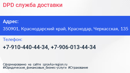 DPD, служба доставки по адресу 350901, Краснодарский край, Краснодар, Черкасская, 135 в дальнейшем Организация, размещена в следующих категориях: