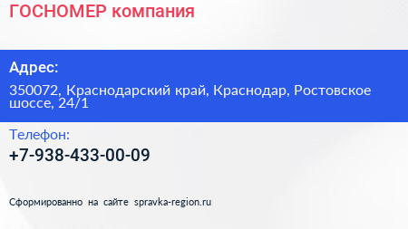 ГОСНОМЕР, компания по адресу 350072, Краснодарский край, Краснодар, Ростовское шоссе, 24/1 в дальнейшем Организация, размещена в следующих категориях: