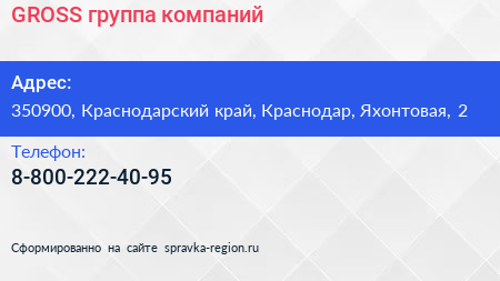 GROSS, группа компаний по адресу 350900, Краснодарский край, Краснодар, Яхонтовая, 2 в дальнейшем Организация, размещена в следующих категориях: